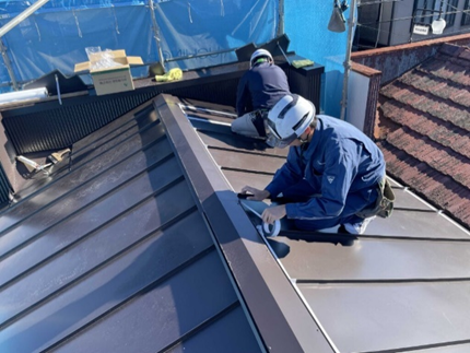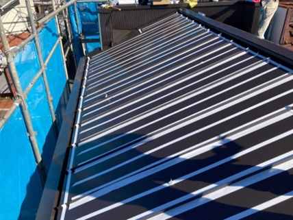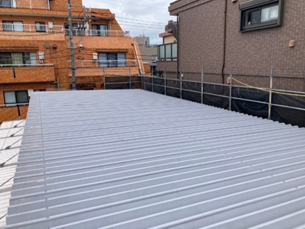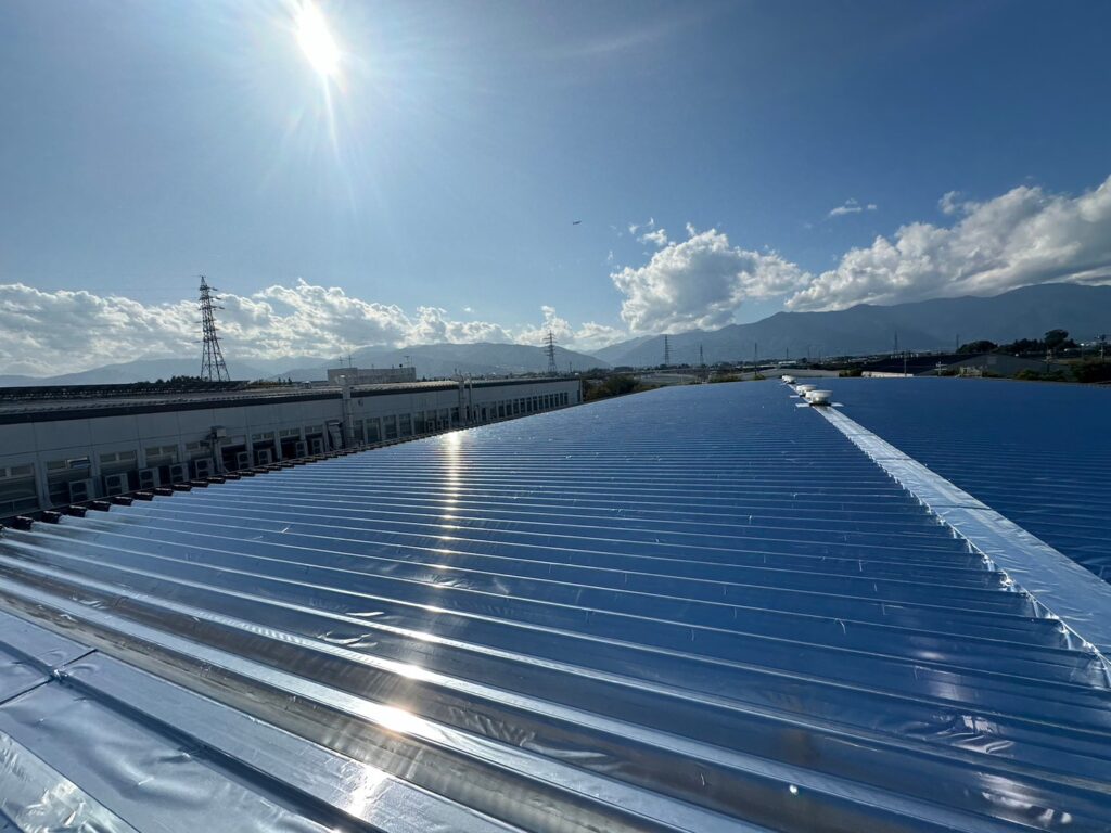 折板屋根の上にシートを貼るだけなので、短期間での施工が可能です。