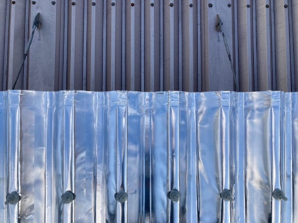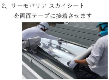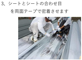 スカイ工法のスカイシートは両面テープで折板屋根に取り付けます。